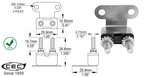 | Notes | Two 10-32 stud terminals at 0.56 inches | |||