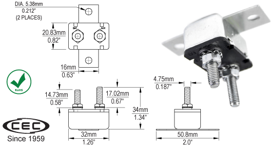 | Notes | Two 10-32 stud terminals at 0.67 inches |