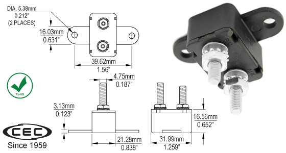 | Notes | Two 10-2 Stud Terminals at different heights: 0.625" & 0.718" |