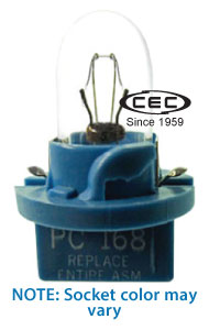 PC168 | BLUE PC SOCKET WITH T-3 1/4 WEDGE (W2.1X9.2d) 14V .35A 3CP C-2F | 14 | 4.9 | T-3 1/4 | Printed Circuit | C-2F |